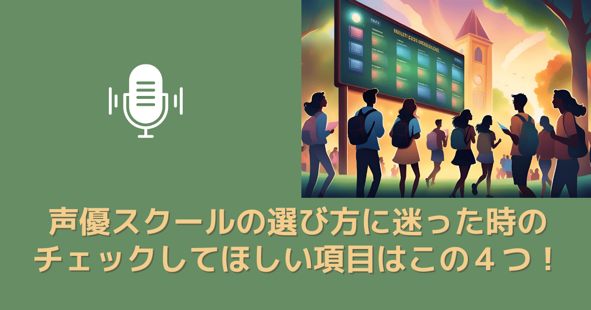 この記事では声優スクールを選ぶ際のチェックポイントについてお伝えしました。