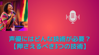 声優にはどんな技術が必要か知りたいですか? 本記事では、声優にはどんな技術が必要か解説しています。 声優にはどんな技術が必要か知りたい方は是非ご覧下さい。